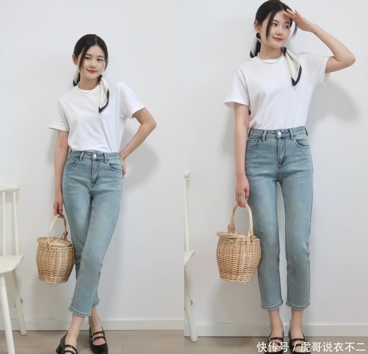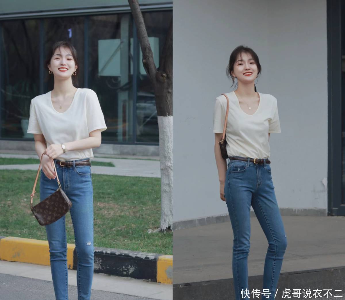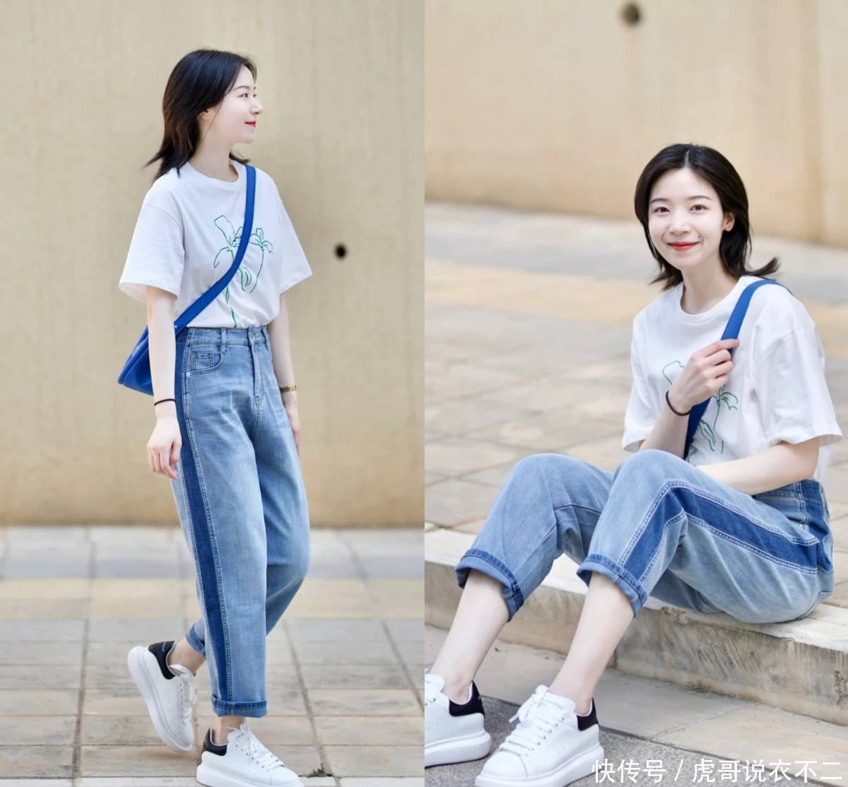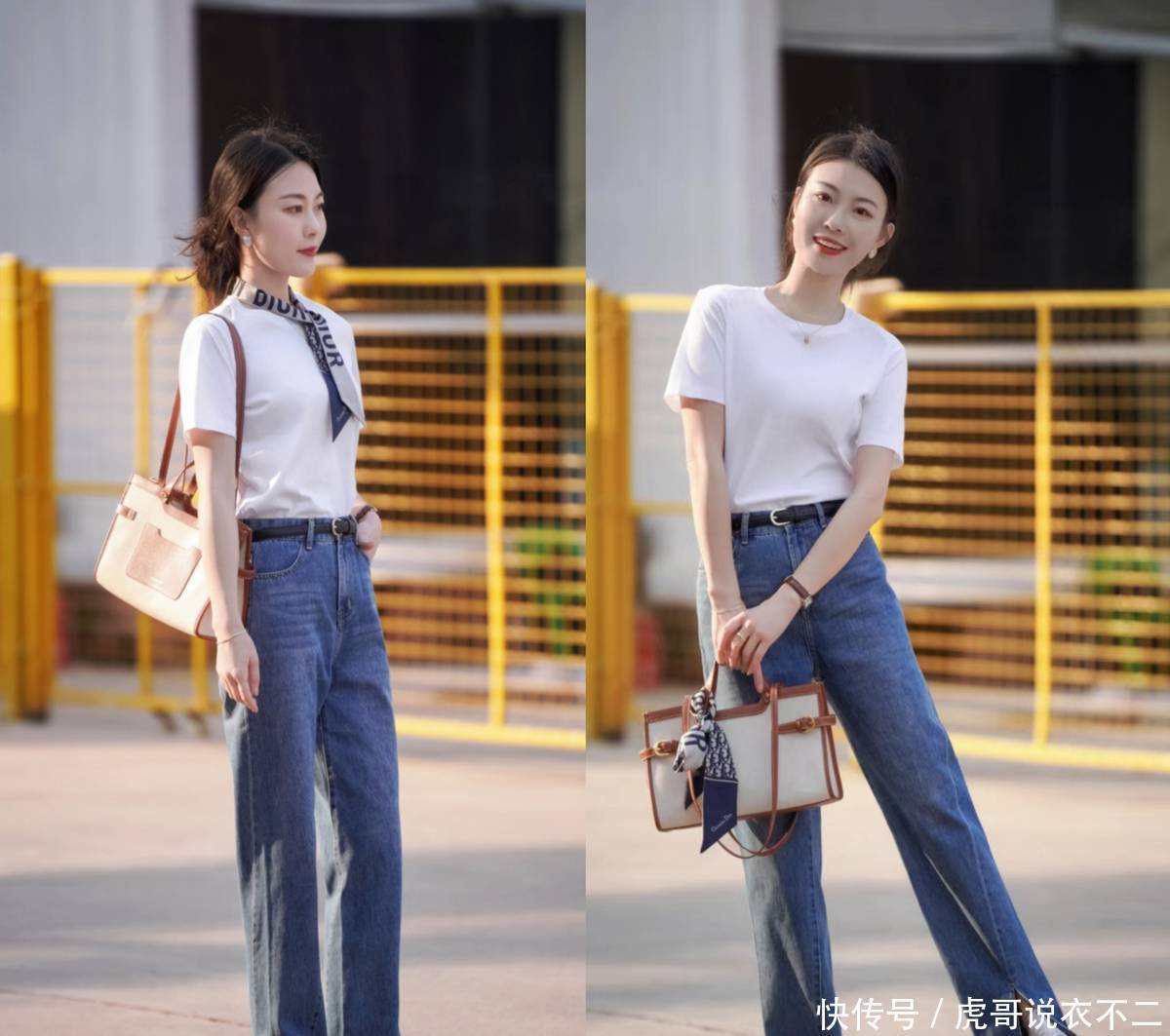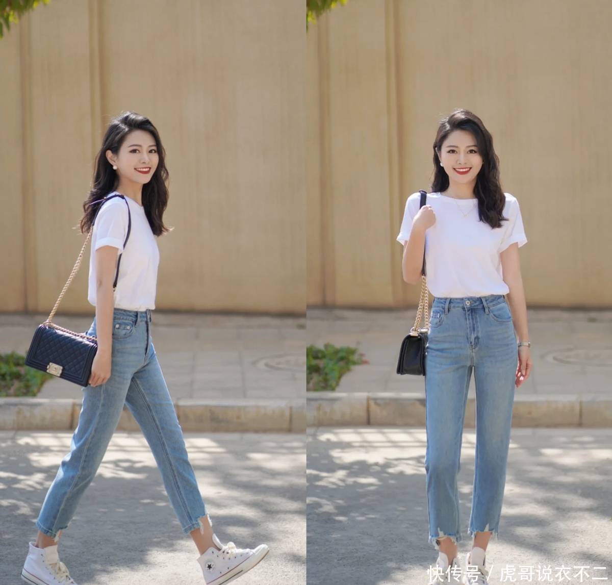 二、白色T恤+蓝色牛仔裤+小白鞋细目好了T恤以及牛仔裤之后,就要接洽期骗什么样的鞋子和它们配合,当下好多女性对高跟鞋的热衷度迟缓着落,她们更心爱穿起来傲气的小白鞋。