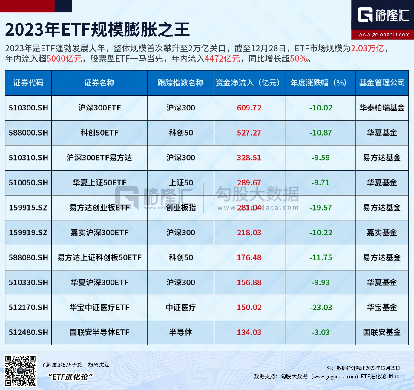 2023年是ETF蕃昌发展大年,举座限制初度攀升至2万亿关隘,为止12月28日,ETF阛阓限制为2.03万亿,年内流入超5000亿元,股票型ETF一马最初幸运快艇真人百家乐,年内流入4472亿元,同比增长超50%。其中,沪深300、科创50指数居品年内累计净流入划分达到738.54亿元、645.74亿元,位居最受投资者喜欢的宽基指数居品一、二位,并泄泄露境内首只超千亿元的权柄ETF——沪深300ETF,百亿俱乐部扩容至36只。