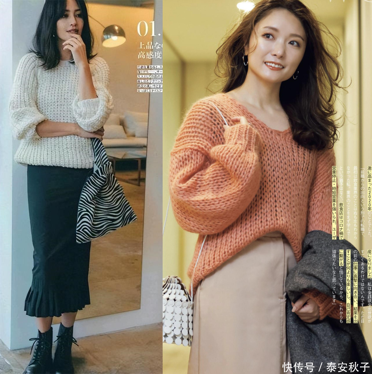 尤其关于上身丰润的女性来说,略显宽松的毛衫,会比紧身的版型更文静实穿。
